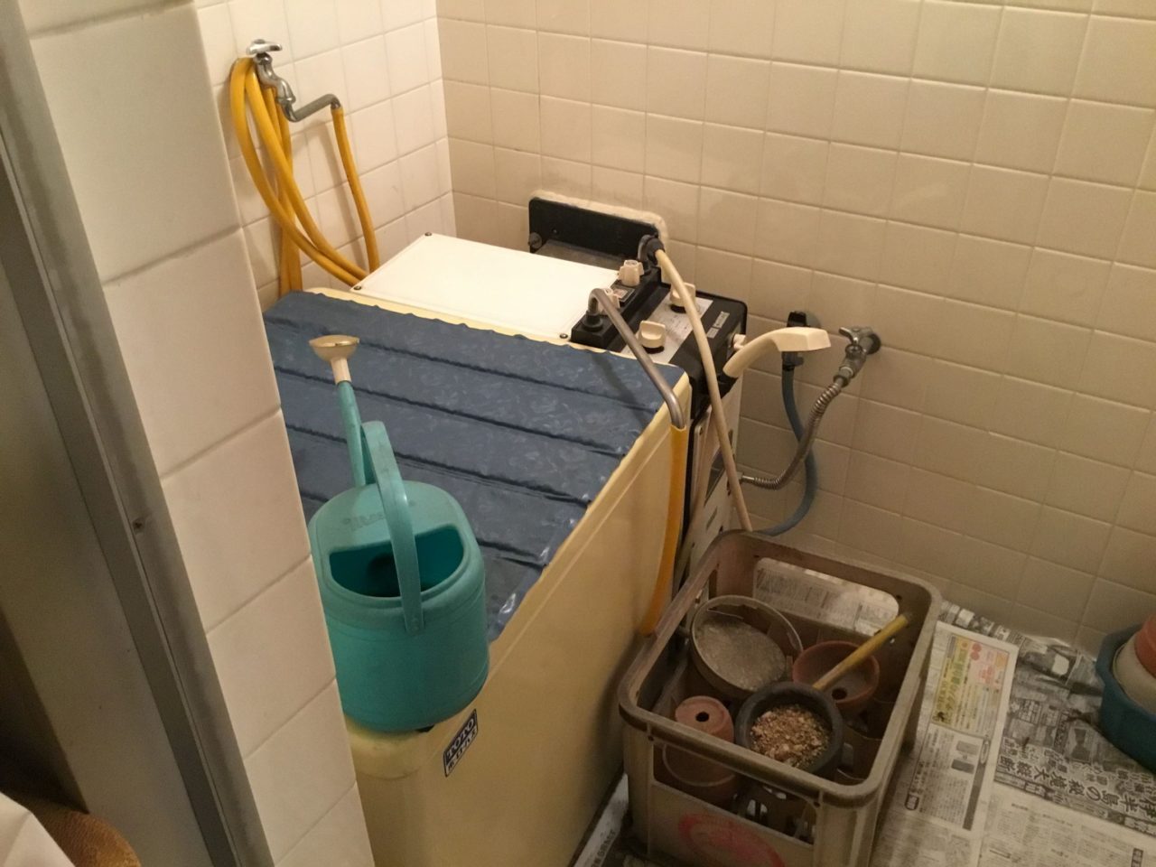 狭い浴室の原因はバランス釜。ひんやり冷たいタイル、滑りやすい床はご高齢の方には危ないですね。